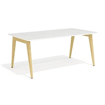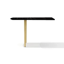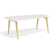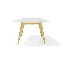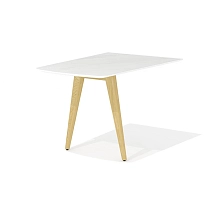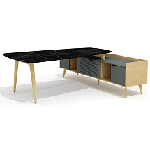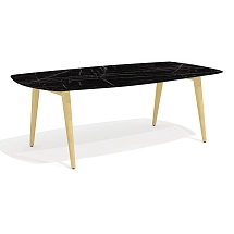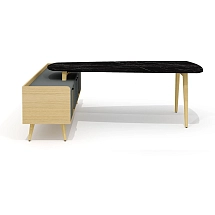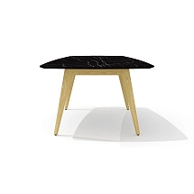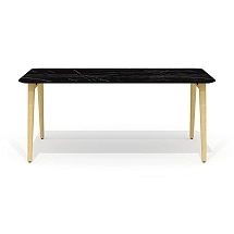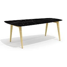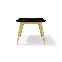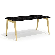 Столешница стола выполнена из плиты МДФ толщиной 25 мм и облицована высокопрочным HPL-пластиком «мрамор черный» в тиснении «шагрень». Опоры каркаса стола выполнены из массива ясеня и покрыты прозрачным лаком.
