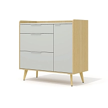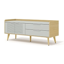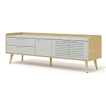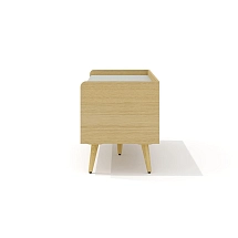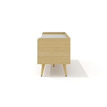 Корпус тумбы установлен на пять деревянных опор (четыре угловых и одну центральную), приподнимающих тумбу над полом и делающих ее визуально более воздушной. Опоры выполнены из массива ясеня в двух вариантах: угловые – переменного сечения с наклоном 20 гр. и центральная – конусной формы без наклона. Ширина опор – 30 мм, высота (без учета регулировочного элемента в основании) – 207 мм, высота (с учетом регулируемого элемента) – 217 мм.