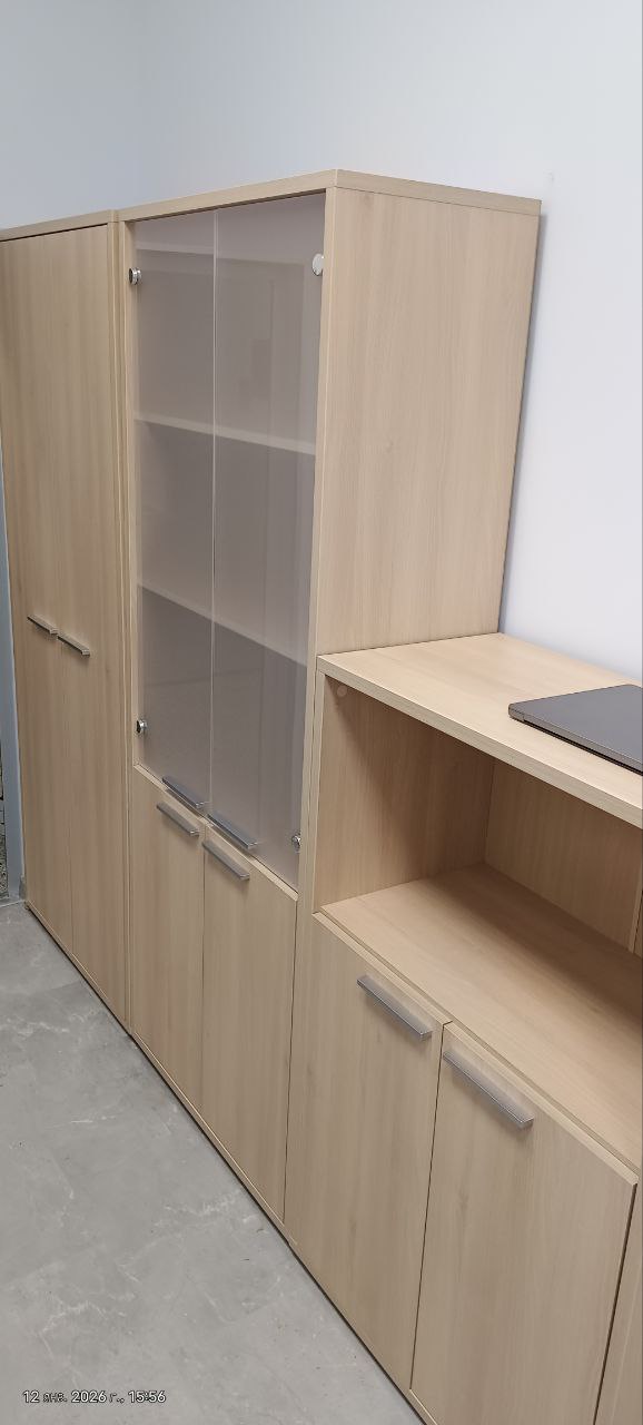 Толщина столешниц и опор, корпуса шкафов и тумб выполнены из ДСП 25 мм., кромка ПВХ 2 мм. Толщина фасадов 18 мм, кромка ПВХ 2 мм.